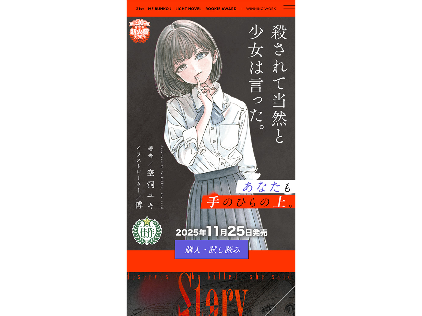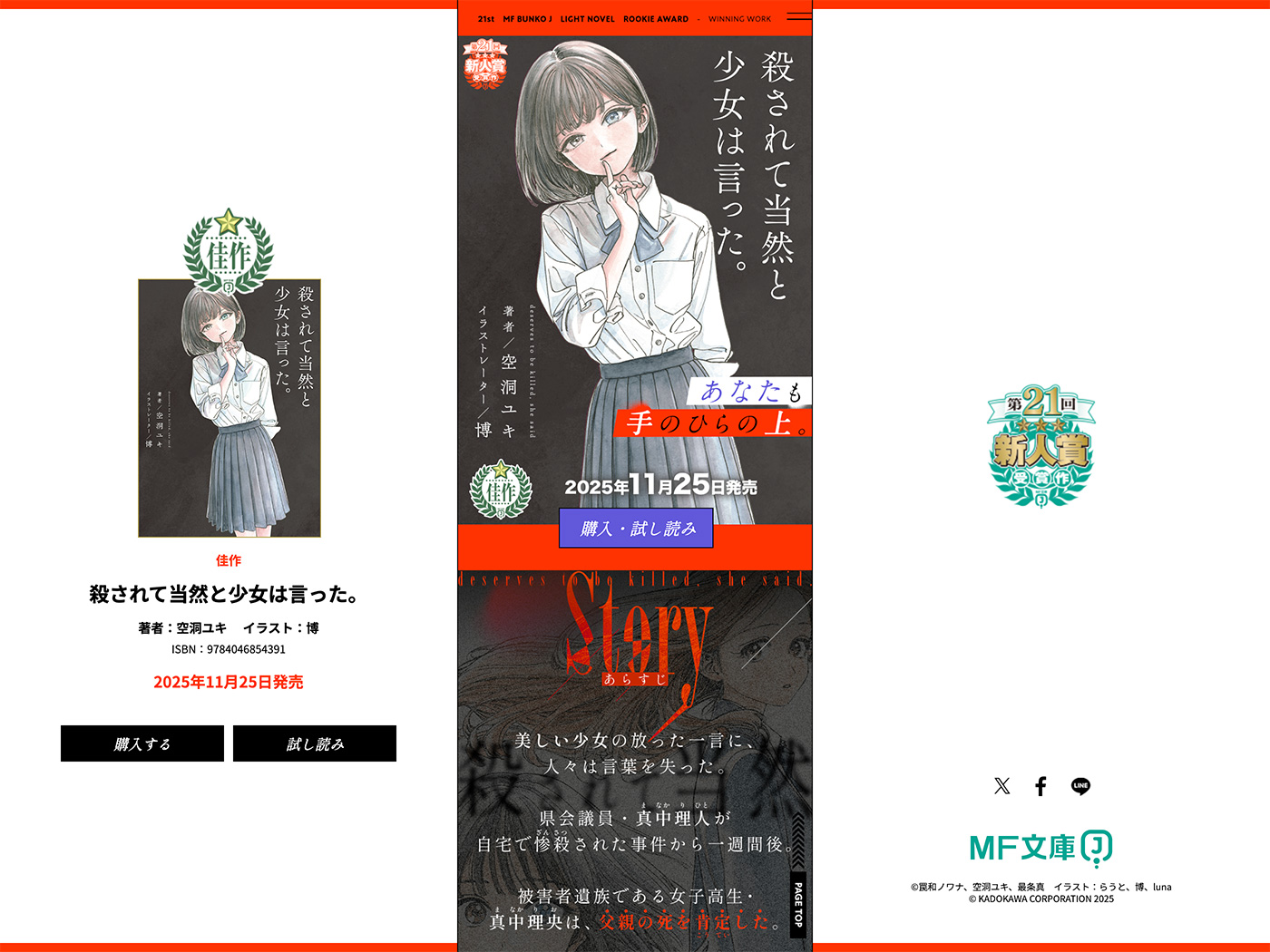 第21回MF文庫Jライトノベル新人賞を受賞した3作品の特設サイト。