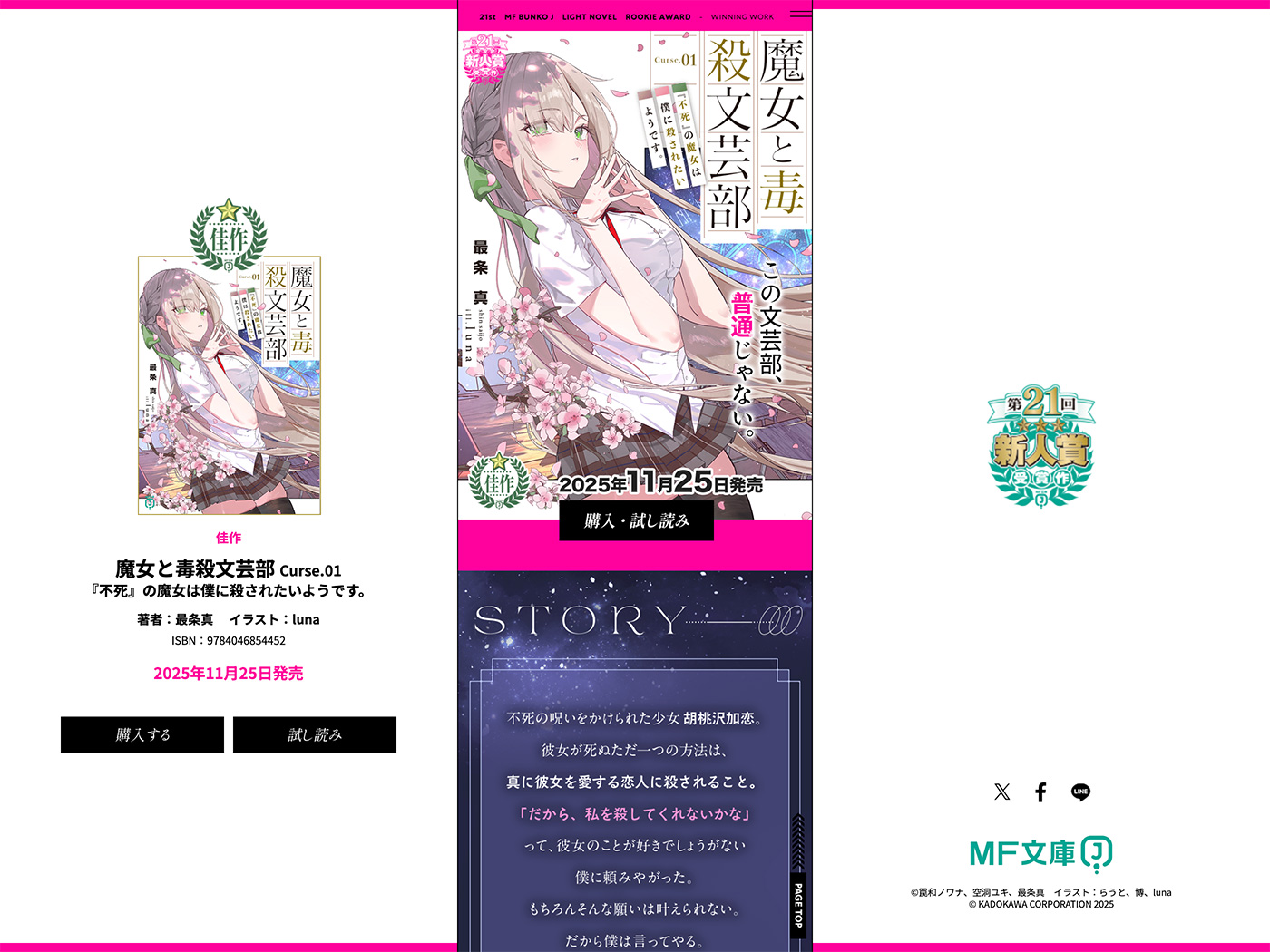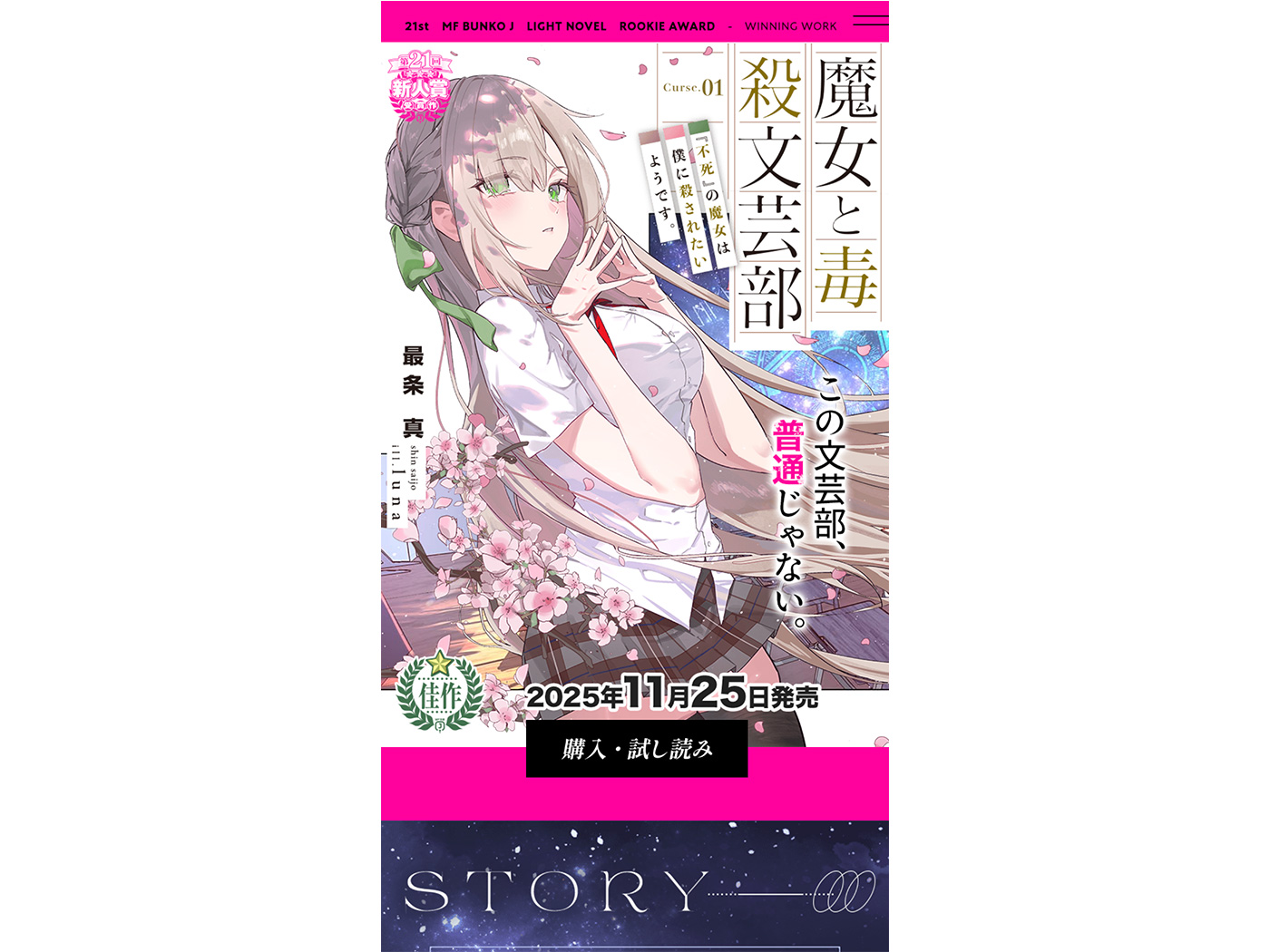 佳作「魔女と毒殺文芸部 Curse.01 『不死』の魔女は僕に殺されたいようです。」の